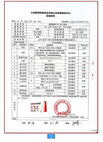 阻燃绝缘 PVC 电工套管检验报告、合格证